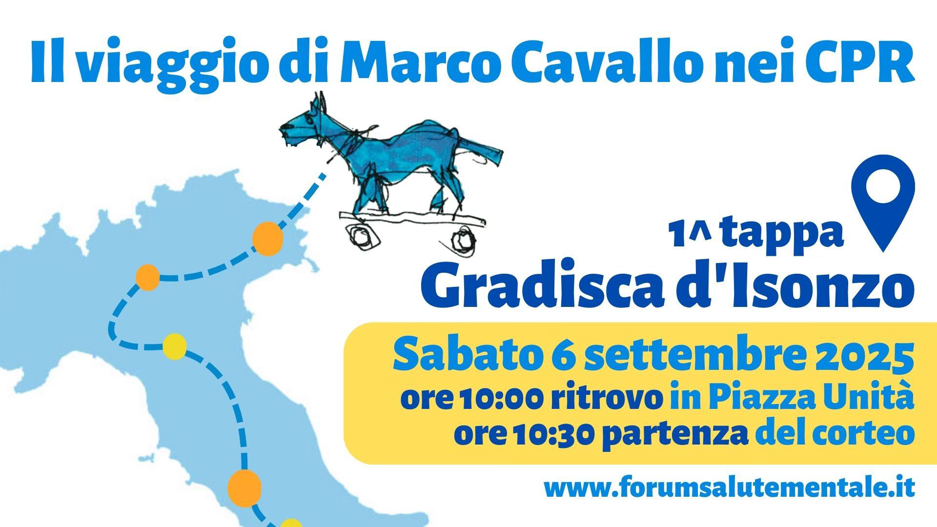 “Insieme a Marco Cavallo percorreremo l’ultimo tratto di strada fino al CPR di Gradisca, dove sono previsti gli interventi del Forum Salute Mentale e delle realtà promotrici e aderenti.